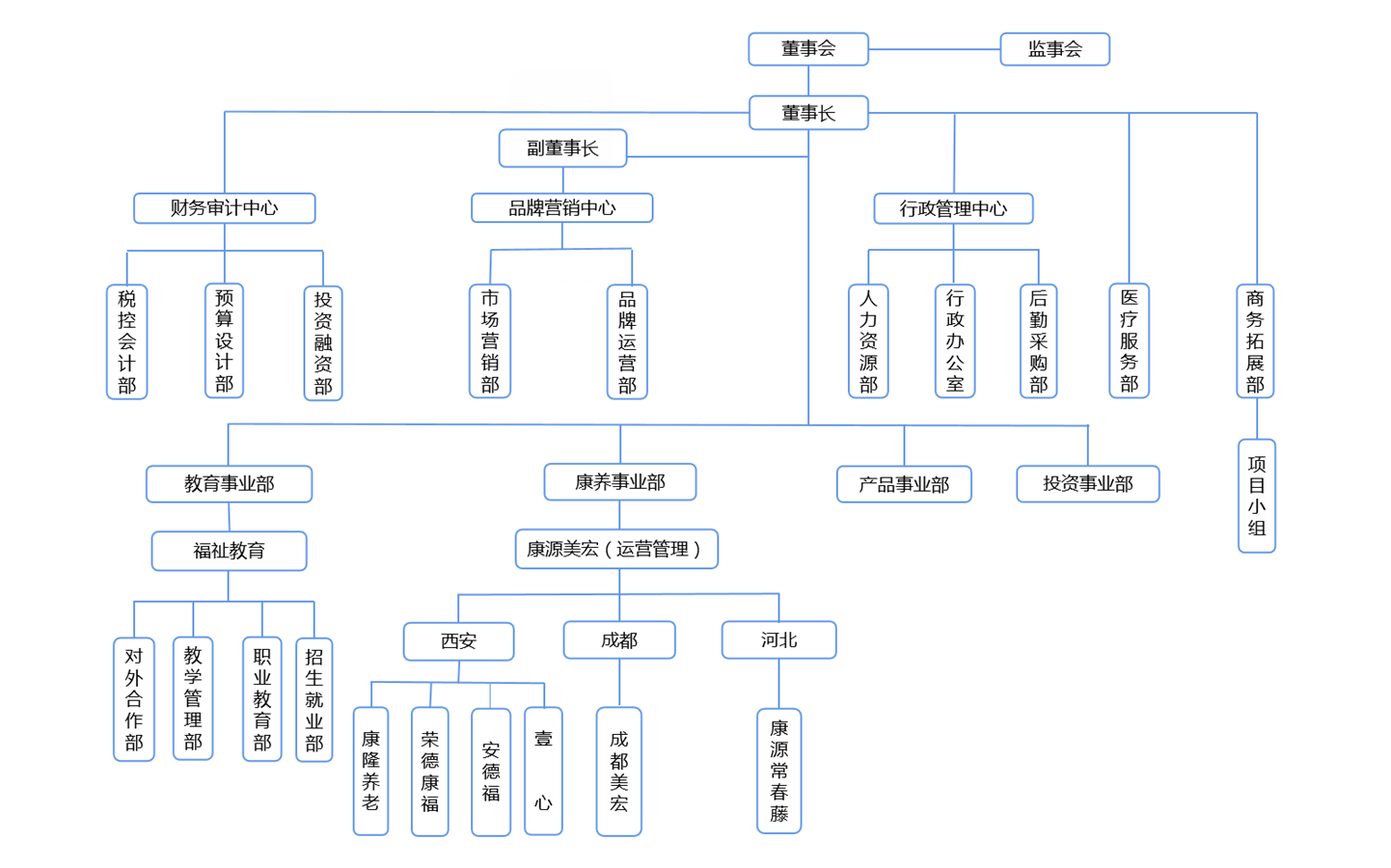 陕西康源投资(集团)有限公司(以下简称:“康源集团”)成立于2004年,集团以养老教育、康养机构、社区居家、智慧养老为四大业务板块,是具“产、学、研”融合发展的创新型养老企业。集团以“打造国内康养服务运营第一品牌”为愿景,旨在融合各行业资源,结合中国环境,打造以养老教育为“龙首”,以康养机构为“躯干”,以社区居家及智慧养老为“两翼”,创建提升中国长者幸福度的养老模式。